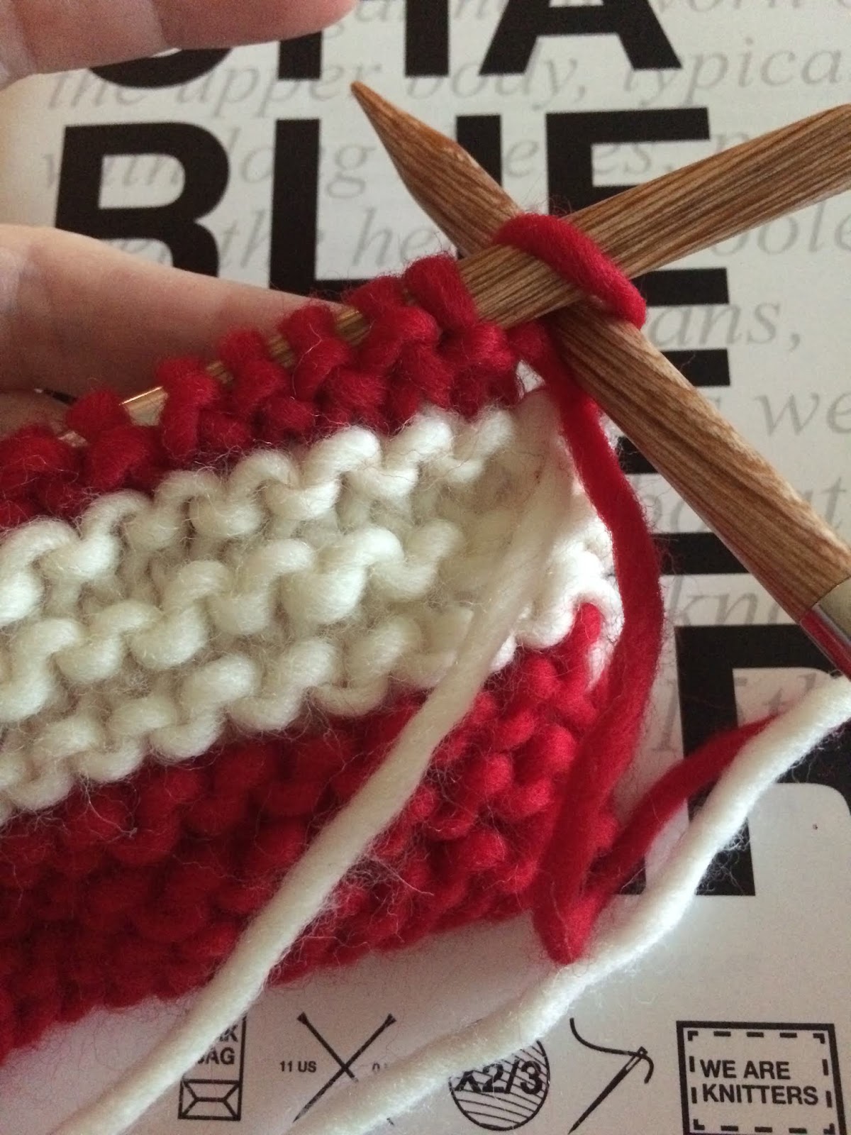 The yarn was very chunky wool, and the needles were extra large, both of which were a bit unlike my usual knitting style. But I thought it would be a good challenge for me.