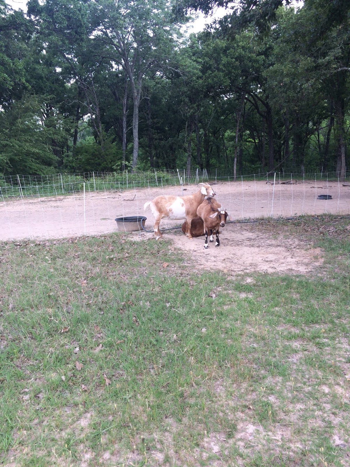 The goats were out one morning recently. I'm not sure how they got out. I couldn't see an obvious place where the fence was down. But I do think the power to the fence wasn't working so they may have just jumped over.